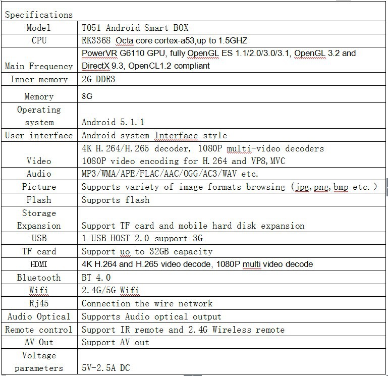 SkyboxTv T051 rk3368 lõi 8 Cortex- A53, lên đến 1,5 GHz